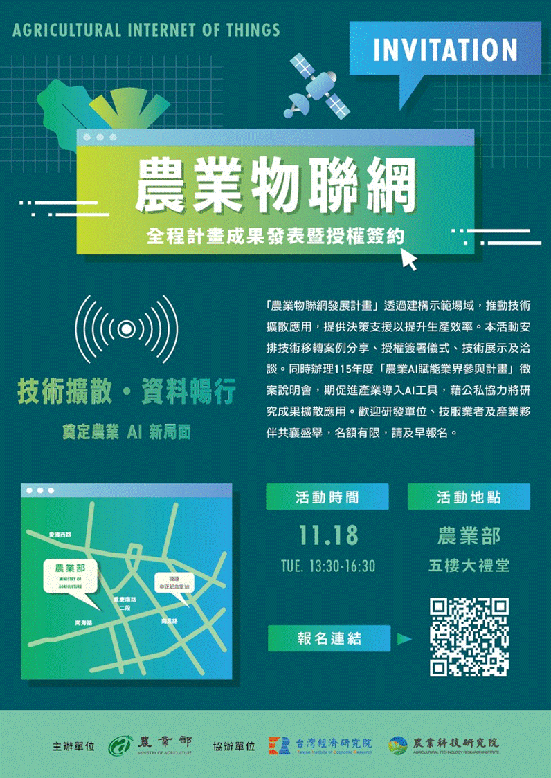 同時辦理115年度農業AI賦能業界參與計畫徵案說明,誠摯邀約有興趣的技服業者、未來欲導入AI工具的農方朋友們共襄盛舉,名額有限,歡迎盡速報名與會!