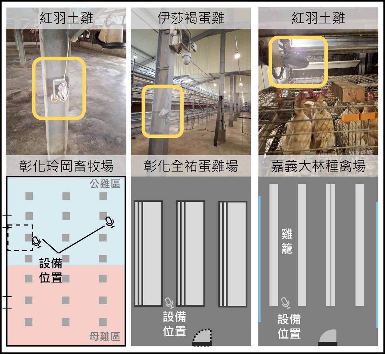 以聲紋辨識技術自動偵測雞隻罹患呼吸道疾病之異狀叫聲,監測雞隻健康狀況,並計算可量化之雞隻健康狀況預警值,提供飼養業者參考。
