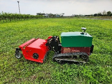 操作方式除可透過遠端遙控外,亦能預先規劃及設定行走路徑,自主完成除草作業。機器採履帶式設計,可穩定行走於多變的地面狀況,行駛速度約每小時1.2公里,單次電池續航約2.5小時,可高效率完成約3分地的除草作業。