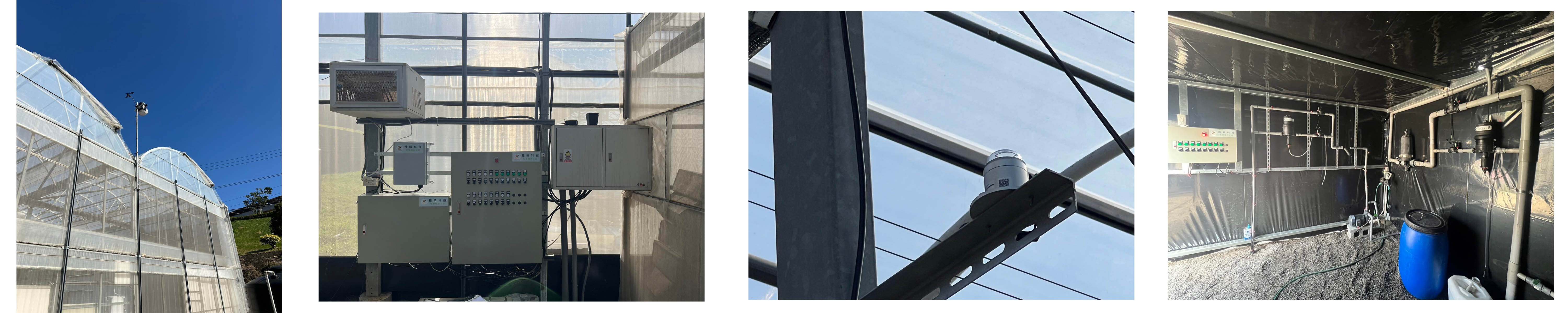 1.環境數據採集系統:全面建置高精度的室內、室外環境偵測系統,為決策提供可靠依據。使用(1)室外微型氣象站- 設置於溫室外部,即時監測關鍵外部氣象參數。包括:光輻射計、風速計與風向計、雨量筒與光學式降雨感知偵測、溫溼度計與大氣壓力偵測。(2)室內環境感測:室內溫濕度計和遮蔭網下光輻射計。