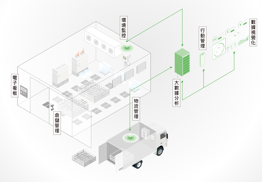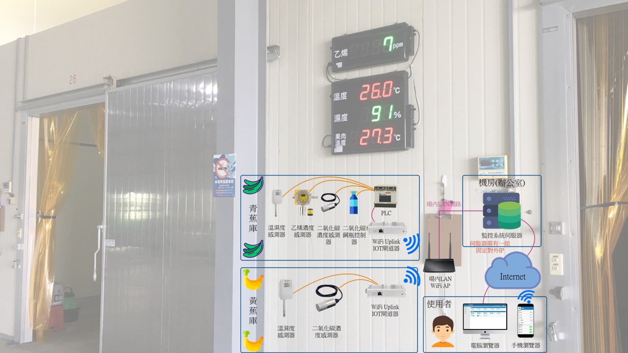 透過數據的分析與環境的監控,在催熟庫設置參考價值點,確保感測器的取值正確,利用即時的告警通知及乙烯濃度模型加強生產管理,減少香蕉再催熟的成本,達到有效的節能,同時獲得企業聲譽。