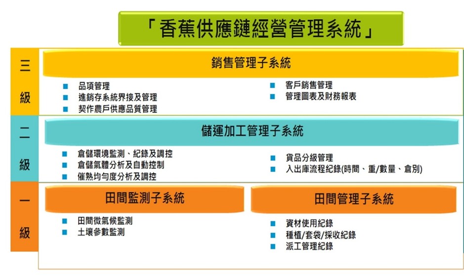 本公司協助屏東南州的香蕉農產公司導入並整合以下系統:香蕉供應鏈經營管理:協助農友紀錄並統計各項數值,並分享香蕉農產公司數據,以協助帶動香蕉產業。