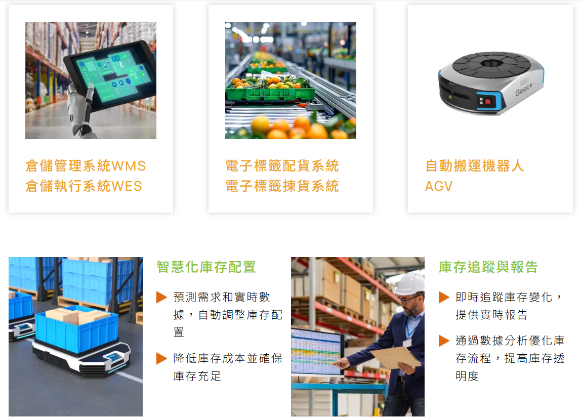 - 資料收集/管理、雲端儲存、大數據分析、決策應用平臺(含預警、農務管理、客戶管理)、進銷存管理、履歷/溯源管理