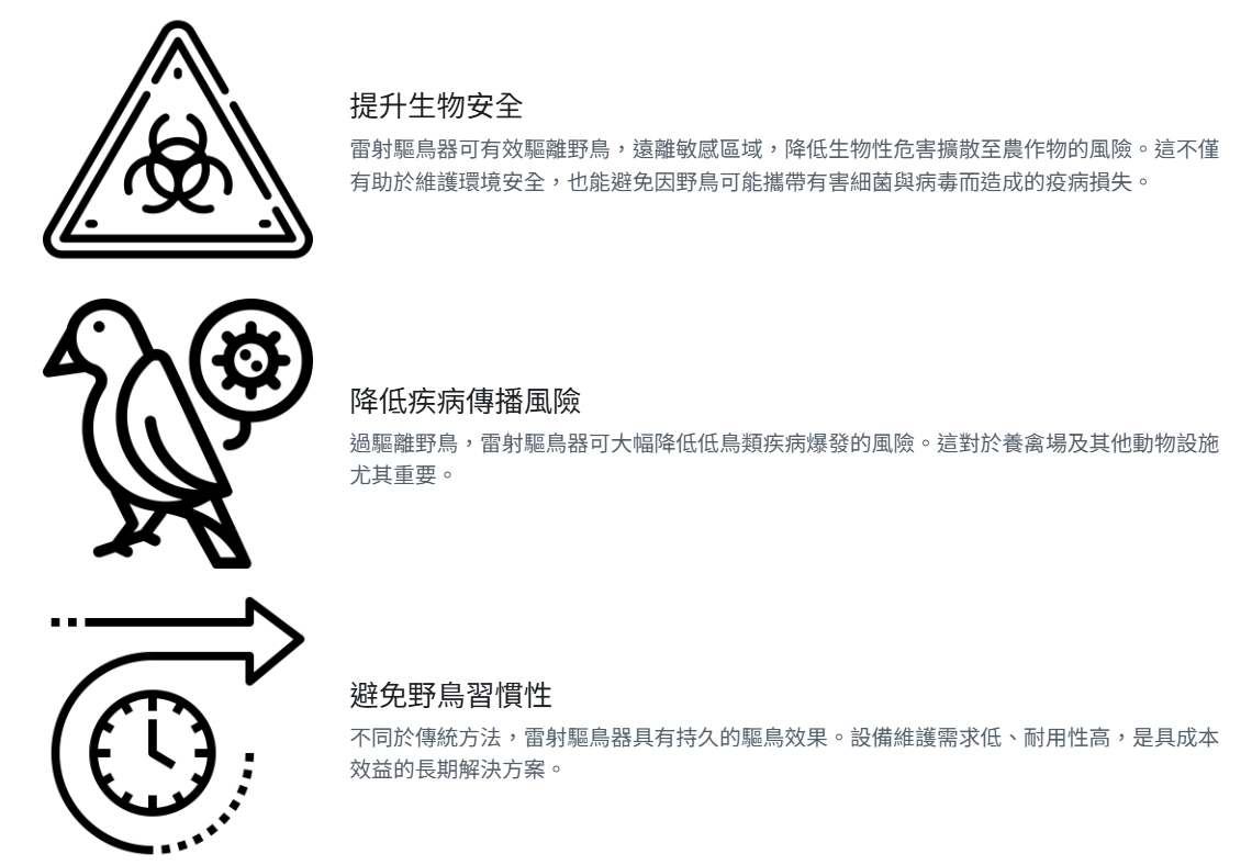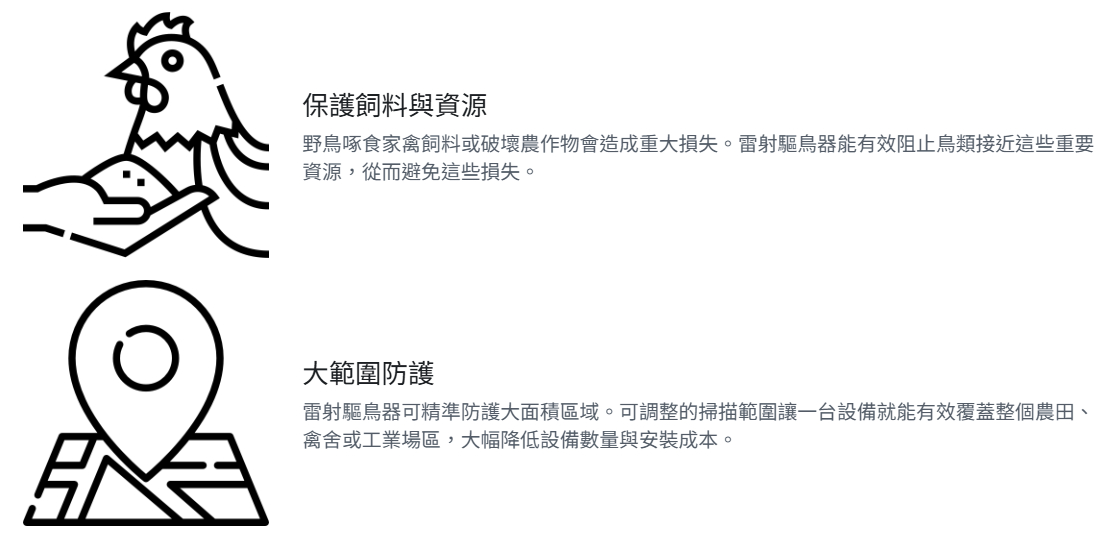 智逐透過人工智慧與影像處理技術進行家禽體重、均勻度、活動力與呼吸道疾病等健康狀況之監控與預估,透過自動化監控設備,再由AI邊緣運算直接獲得家禽的生理徵狀,可進一步去評估成長狀況與疾病。另外,公司產品包括AI雷射驅鳥器,以電腦自動分群,從最大群野鳥做紅外線雷射驅趕,以獲得最佳成效。