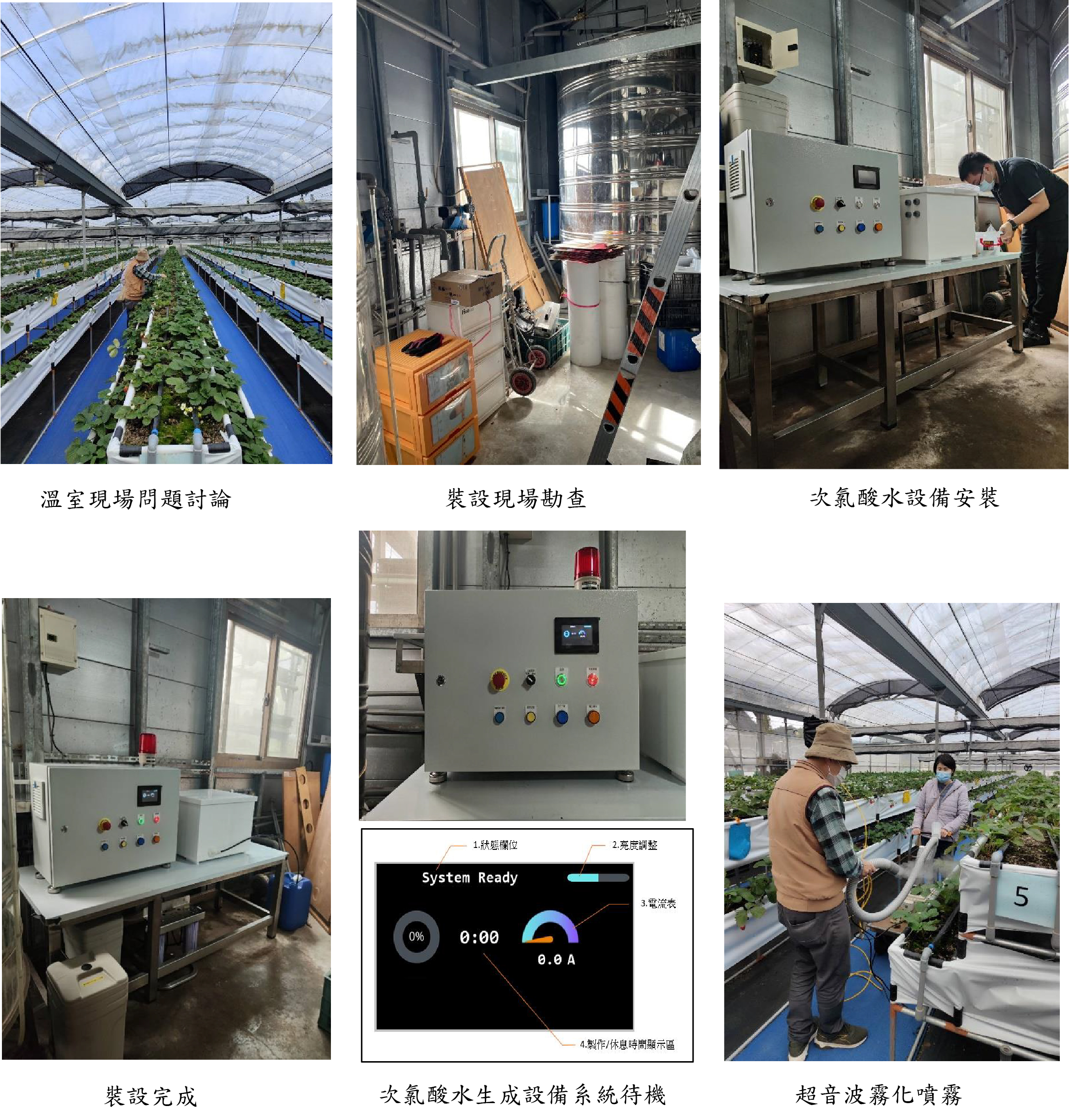 研究目標明確:以「葉面噴灑」與「土面滴灌」雙路徑,測試次氯酸水對白粉病、黑點根腐病與根腐線蟲等病害的防治效果。前期由雙方共同分析溫室條件、土壤特性與歷史病害數據,確立實驗設計及觀測指標,採取「噴灑、滴灌」的雙重策略,以達到綜合防治目的。
