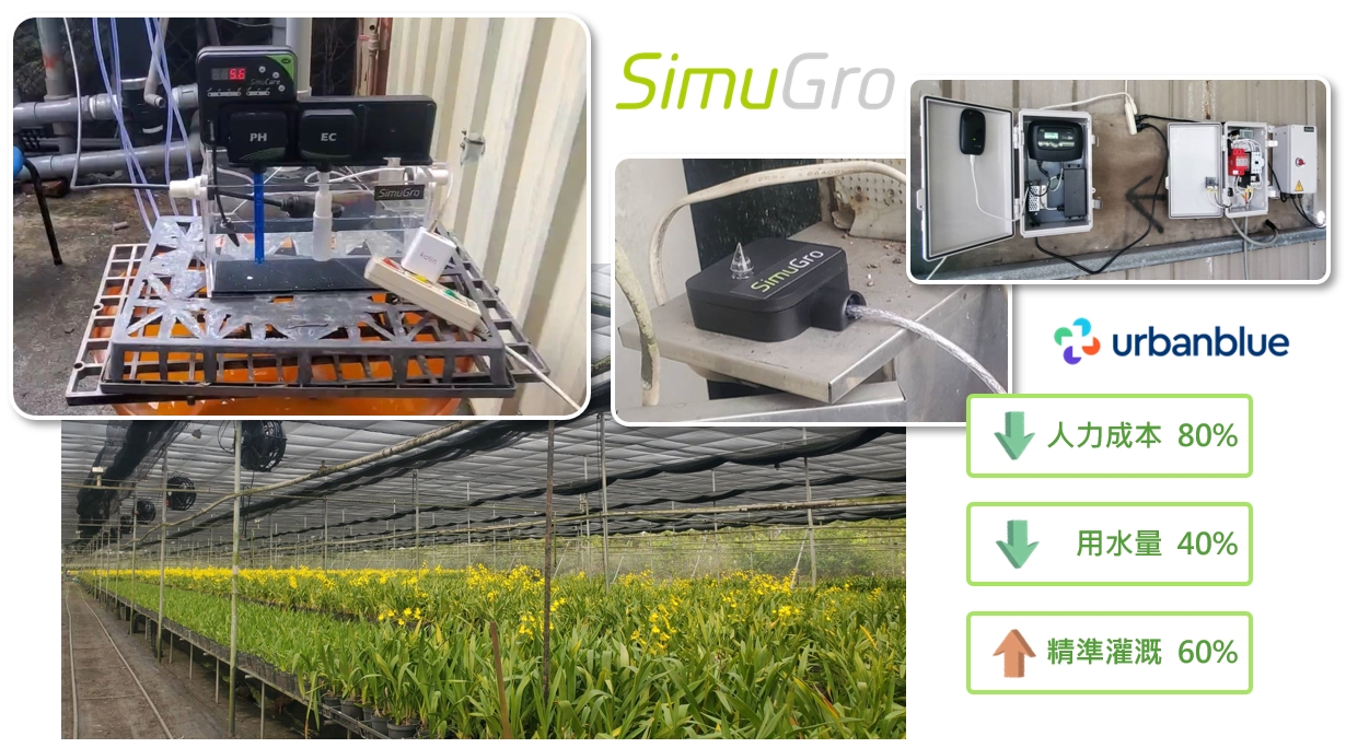 國內文心蘭產區主要分布於中、南部地區,就全台灣的種植面積而言以屏東縣最大,而位於屏東縣鹽埔鄉的文心蘭花卉農場主要產銷於日本,因農場主人年紀漸增由兒子接手幫忙,其中每日的水肥管理更是需要人力協助及精準掌控。施用於文心蘭的液肥需要掌控pH及EC數值,藉由SimuCare水媽祖可執行24小時不間斷監測溫度、pH、EC等水質數據,並透過光照感測器自動連結開啟灌溉系統,亦可遠端設定排程控制抽水馬達及電磁閥,讓作物確保在不同溫度下都能保持最適合的含水量,維持良好生長。