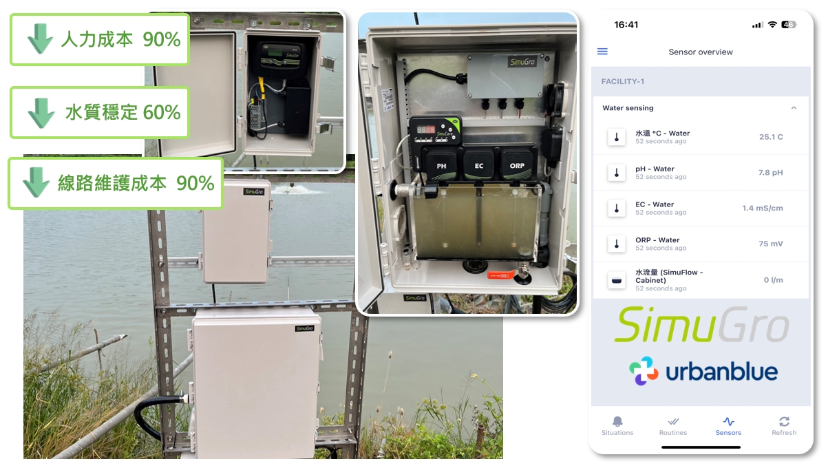 位於高雄市路竹區的泰國蝦養殖場,養殖場主人平日需要上班,兼差之餘的假日才有時間處理養殖作業,而泰國蝦對水質中的pH酸鹼度及鹹淡水程度有一定的要求,對於解決遠端監測水質狀況藉由SimuCare水媽祖進行24小時不間斷監測水中溫度、pH、EC、ORP等資訊,即使不在場域內也可即時監控水質,降低人手巡場時間,減少人工手持探棒檢測水質之人力,並將相關數據自動傳輸至遠端平台紀錄,可以隨時查看大數據及趨勢圖分析。