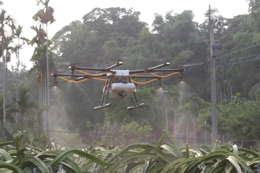 圖1、紅龍果之無人機噴藥