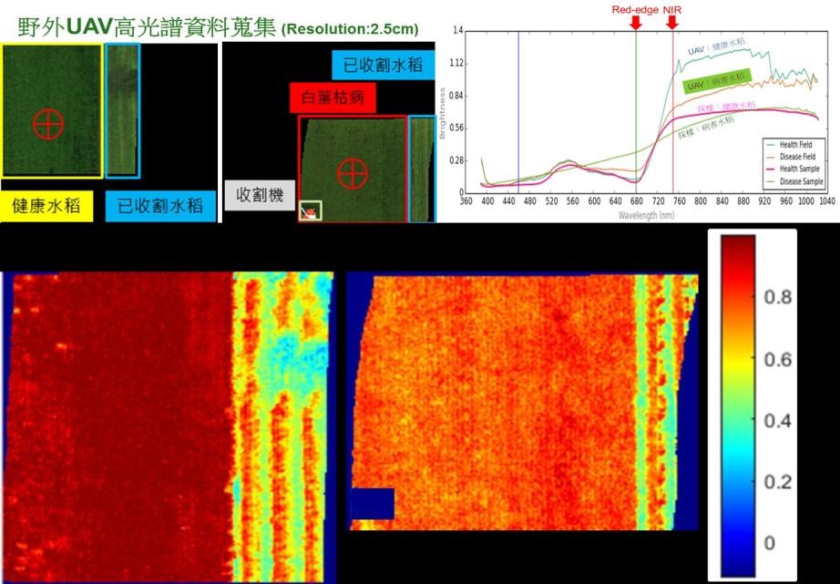 | 圖5、利用無人機搭載高光譜相機進行水稻健康評估 |