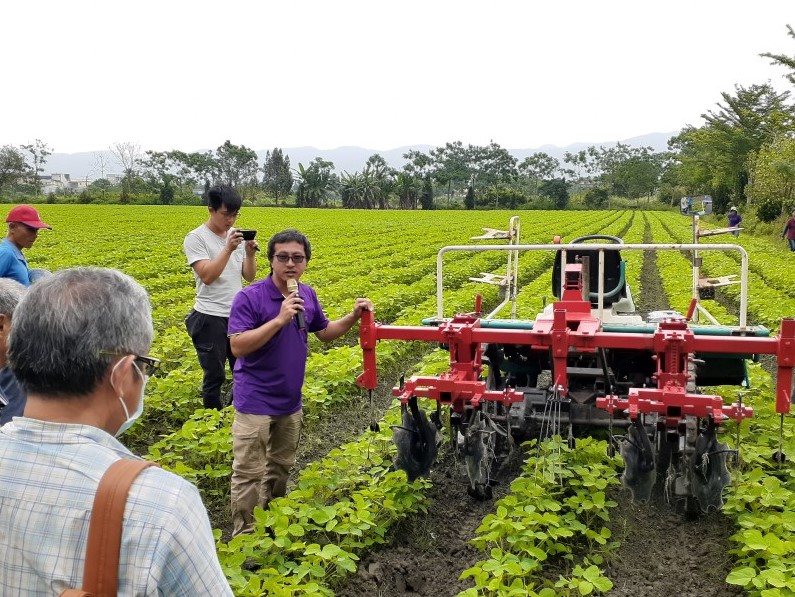 在機械研成後,我們密集和農友相約測試。在壽豐鄉四季耕讀有機農場的試驗中,有機大豆和有機花生的雜草防除率都有九成以上的好表現,因此在5月辦理機械除草示範觀摩會。現場除了說明如何操作和調校機器,也建議農友適地適種並依據土壤質地選擇適合的除草機械,還要依天候把握除草的時機。此外也向農友介紹,透過水旱輪作及多次整地,都可以大幅降低田區的雜草種子密度,預防性管理可以減輕日後除草的困難。觀摩會最後在壽豐鄉溪口村的有機花生試驗田區現地討論,農友看見成功案例,也增加種植與管理的信心。