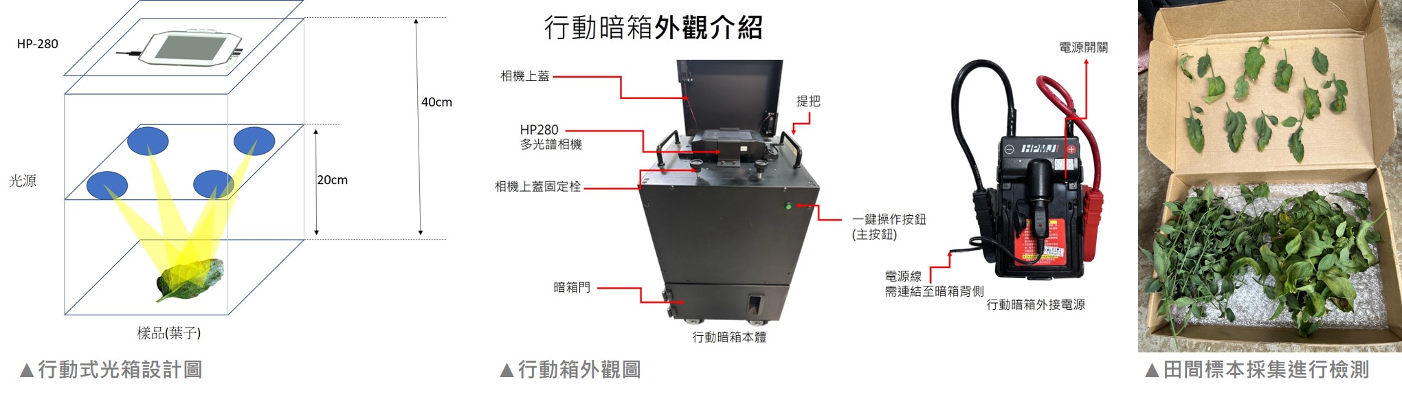 研究高光譜影像之人工智慧-專家代理人自動生成系統分析模型,用以監控番茄植株的水分變化與病蟲害偵測,整合與開發手持式高光譜相機、行動式光箱及雲端人工智慧檢測平台針對葉面分析,以提升番茄果實的風味,滿足消費端需求。